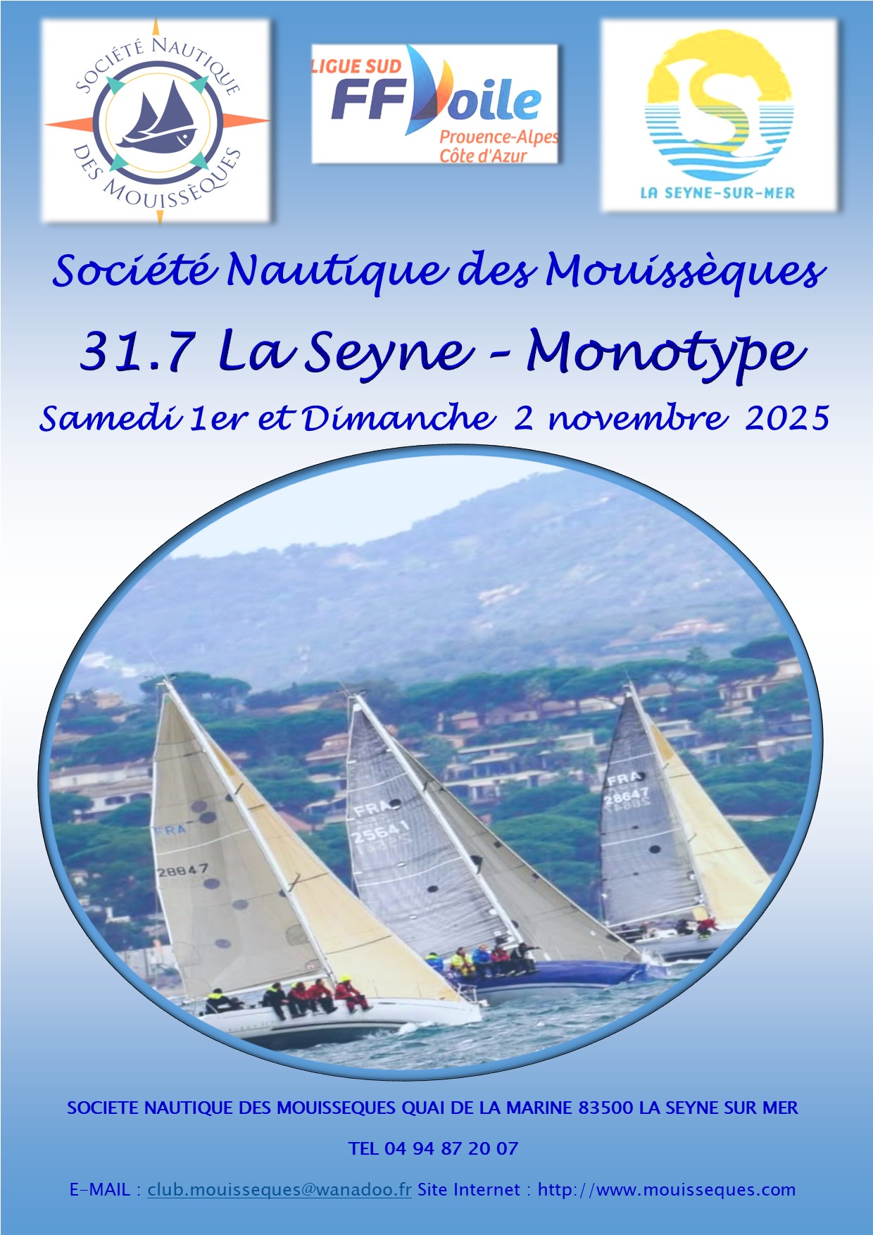 Régate “31.7 La SEYNE Monotype” samedi 1er et dimanche 2 novembre 2025 – Affiche – Avis de course – IC – Inscription – Paiement – Album Photos – Classement